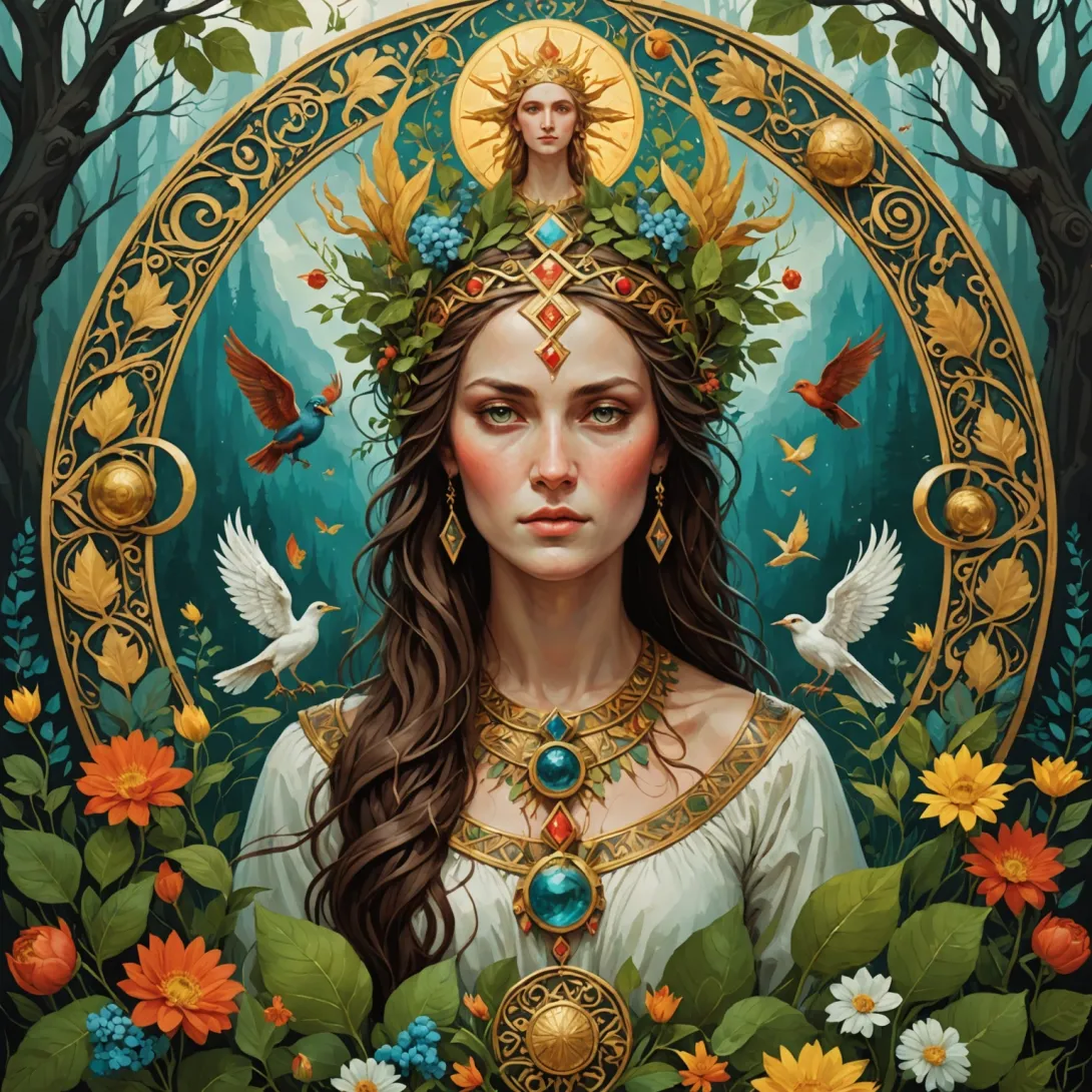 Богиня Жива — это древнеславянское божество, олицетворяющее живую природу, плодородие, весну и новую жизнь. В мифах она выступает как символ возрождения и обновления, что отражает циклы природы и смену времен года.